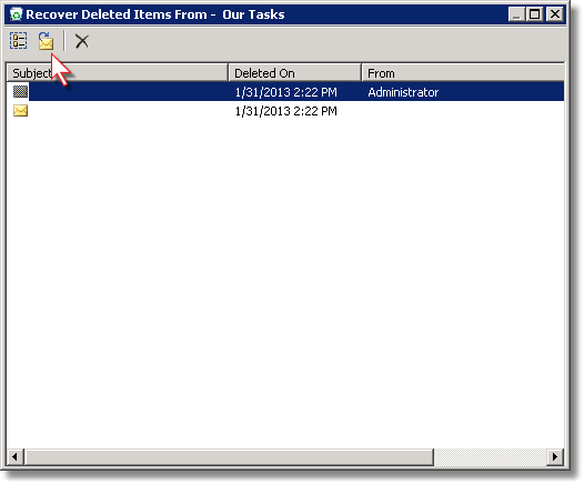 | 4. | Click the recover items button (indicated by the red cursor). |
